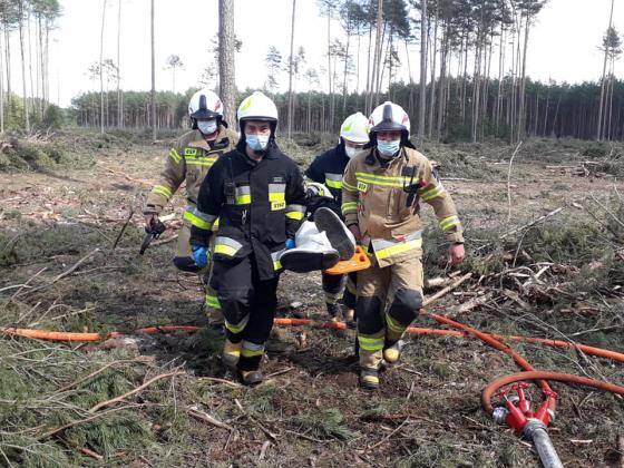 Założeniem ćwiczenia było ugaszenie dwóch ognisk pożaru oraz udzielenie pierwszej pomocy rannej osobie. Przytomny, ale unieruchomiony przez przywalone drzewo drwal, wymagał pilnej pomocy - oparzenia, złamania i podejrzenie uszkodzenia kręgosłupa. Zaopatrzonego rannego ewakuowano w bezpieczne miejsce. W pobliżu zostało przygotowane lądowisko dla LPR /Lotniczego Pogotowia Ratunkowego/. Strażacy ćwiczyli również techniki poboru wody z SCCS IVECO bez użycia motopompy. W ramach minimalizacji niepożądanego ryzyka, kontrolny przelot nad miejscem ćwiczeń podczas ich trwania wykonał samolot pożarniczy "Dromader". Na terenie naszego nadleśnictwa ćwiczenia ochotniczej straży pożarnej (OSP) jak i zawodowej (PSP) odbywają się już po raz kolejny. W każdym z kolejnych ćwiczeń są realizowane różne elementy techniki przeciwpożarowej.