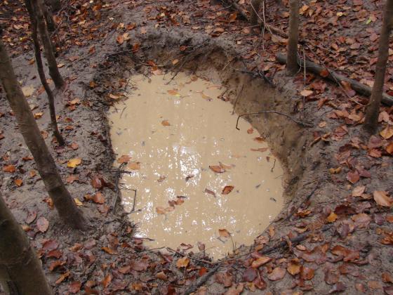 W trakcie przejść udało się także znaleźć „dzicze kąpielisko". W babrzyskach tych zwierzęta zażywają kąpieli błotnych, a następnie „malują", czyli wycierają sierść o wybrane stojące drzewa.