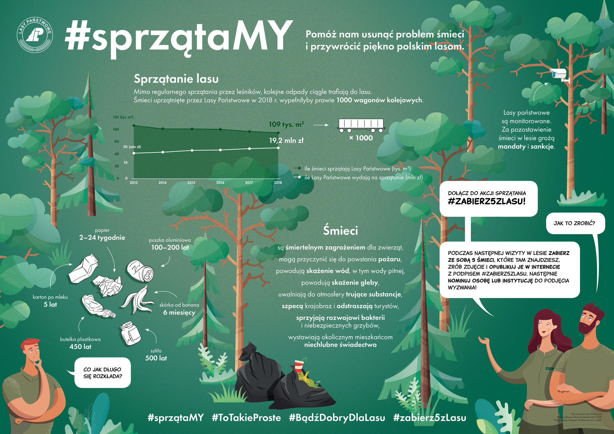 Nie oglądajmy się na innych, zawstydźmy śmiecących i posprzątajmy wspólnie polskie lasy. Razem możemy przywrócić piękno w naszym otoczeniu! W piątek 20 września, kiedy na całym globie będzie rozpoczynało się „Sprzątanie Świata”,w ramach zainicjowanej przez Prezydenta Rzeczypospolitej Polskiej Andrzeja Dudę akcji #sprzątaMY w każdym z 430 nadleśnictw w kraju na chętnych do pomocy będą czekały worki na śmieci, rękawice oraz opiekunowie.