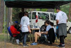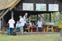 Serwowano gorący posiłek w postaci grochówki z wkładką, bo cóż może lepiej smakować w lesie?