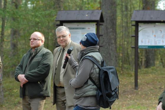 Przecięcie wstęgi poprzedziło wystąpienie nadleśniczego Pawła Kałużyńskiego, który przybliżył cel utworzenia trasy biegowej, a także zaprezentował miejsce oraz charakter terenu, na którym trasa została wyznaczona.