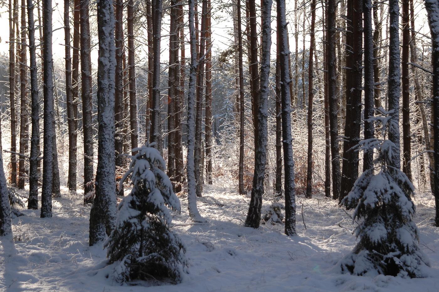 Zimowe zdjęcia lasu.